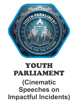 Deliver cinematic speeches on impactful incidents, demonstrating oratory, excellence and policy understanding. (individual game)