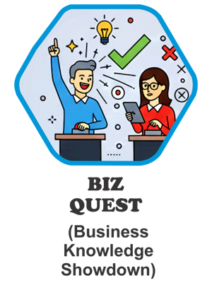 Business knowledge showdown covering current affairs, corporate history and industrial trends.(min:02 max:03 participants)